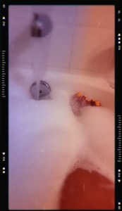 I’m sitting in a bathtub full of Sage and Eucalyptus sea salt particles and hot water. Since it’s the adult thing to do, I’m reminding myself to fish the Sage pieces out when I’m done since they don’t dissolve and will clog the drain. I’m ignoring the fact that there is some weird unidentifiable stain on my white bath pillow that looks like the small fingers of a certain human (knew I should have bought the blue one!). I’m loving every minute of the bath mind you, but it occurs to me that on most days I have to sit a quiet space such as a bath and drink a glass of wine or Dr. Pepper and practice being still in order to feel any semblance of balance or peace. I’m soaking sore muscles, dodging a headache, and for Pete’s sake actually hiding from a nine-year-old and phrases that start with “GiGi can you…?” What manner of heinous fuckery is this? When did I start hiding in my own house?